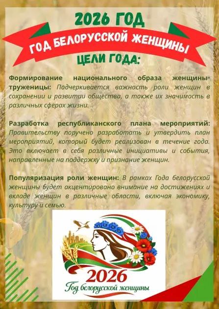 ✨ Кстати, в Год белорусской женщины будет разработан ряд законопроектов, направленных на расширение возможностей женщин для их профессиональной реализации, совершенствование системы пособий и урегулирование имущественных прав.