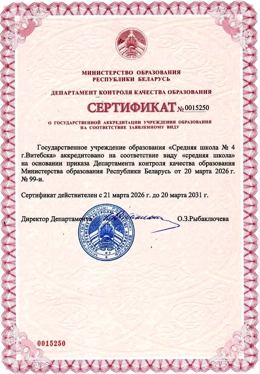 Сертификат о государственной аккредитации учреждения образования