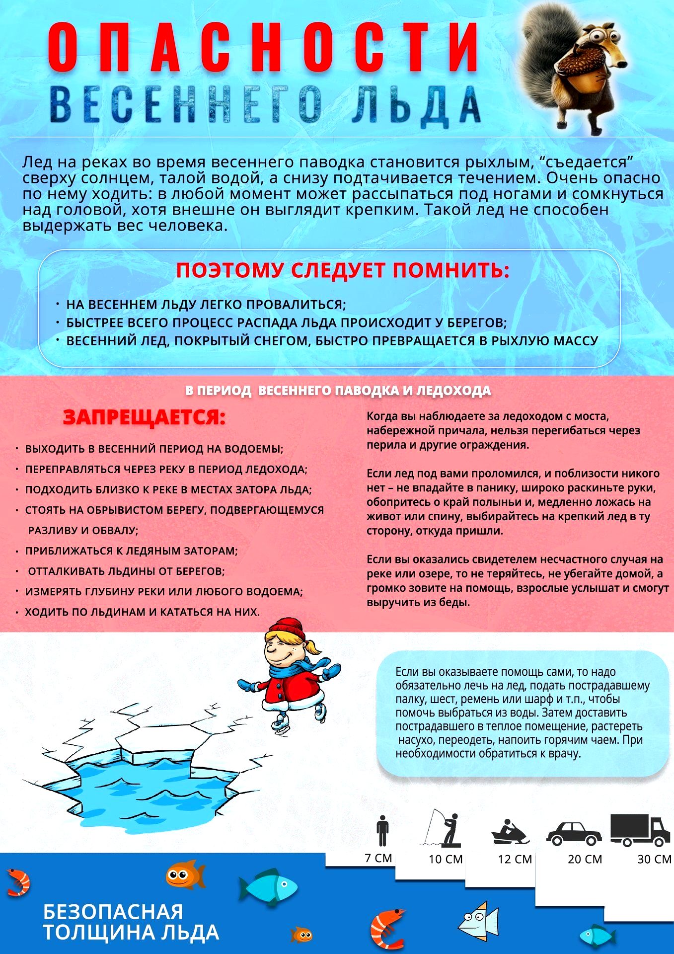 - безопасная толщина льда составляет 7 см для одного человека;