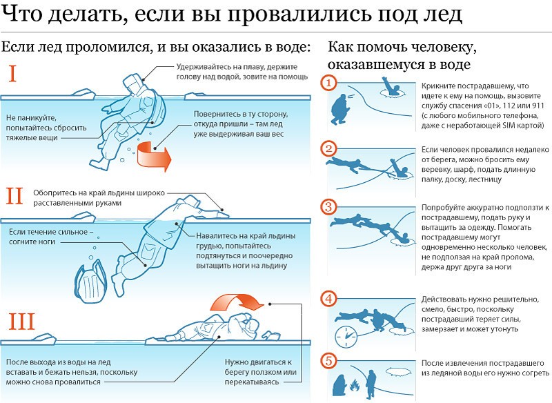 - тонкий лёд находится у берегов, в районе перекатов и стремнин, в местах слияния рек, на изгибах, у вмёрзших предметов, в местах слива тёплых и канализационных стоков;