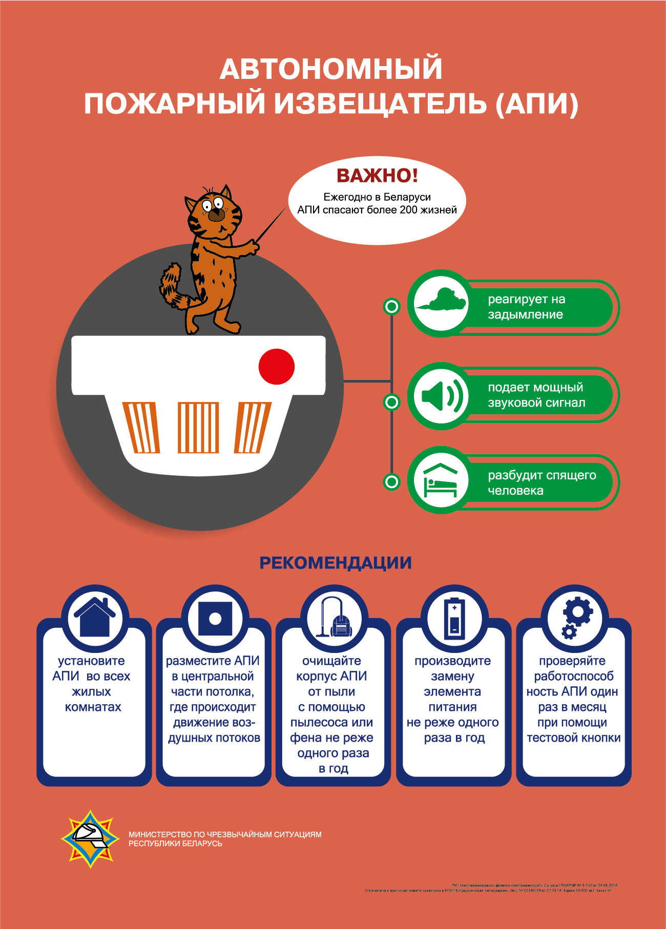 Помните: с точки зрения пожарной безопасности, установленные в жилых помещениях АПИ, должны содержаться в работоспособном и исправном состоянии. Берегите себя и своих близких! В случае возникновения чрезвычайной ситуации звоните по номеру «101» или «112».