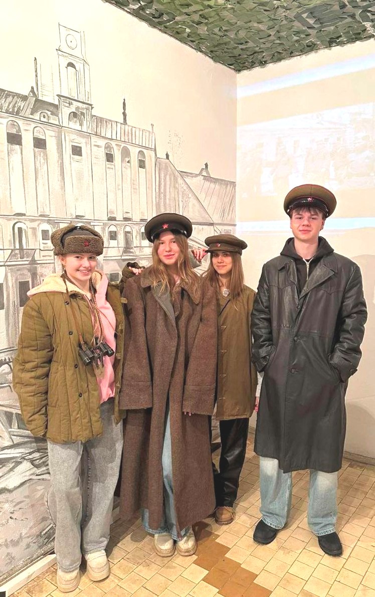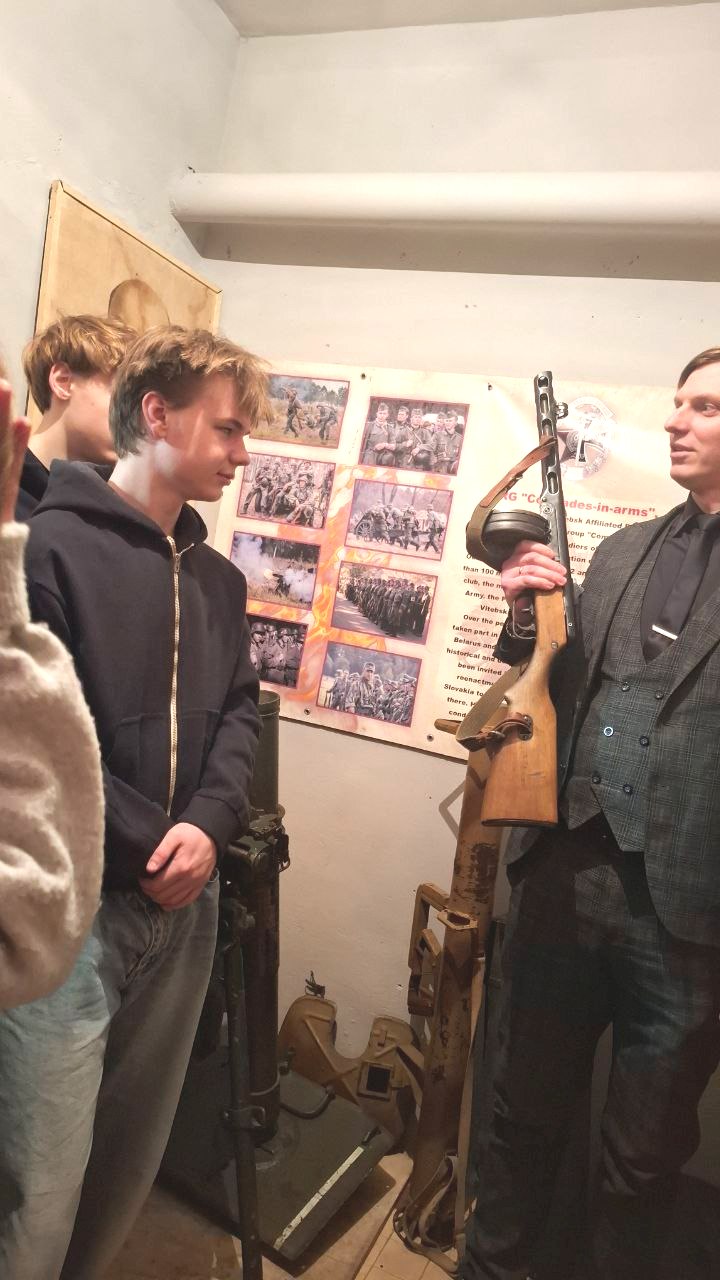 Вниманию ребят были представлены документальные хроники с боевых действий, продемонстрированы руины Витебска после немецкой оккупации, а также дана возможность примерить одежду времен войны, подержать в руках оружие и домашнюю утварь того времени…